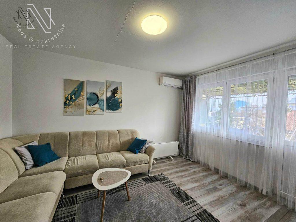 Stan obiluje fantastičnim rasporedom i idealnom spratnošću, namješten je funkcionalnim namještejem sa predivnim pogledom na Borčev stadion i šetalište Gundulićeve ulice.